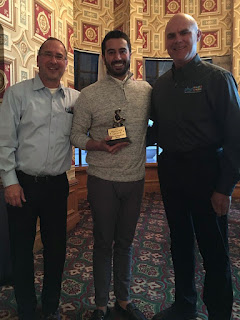 Pictured, left to right: John Ross from PHD Inc., FPE Automation’s Joey Bardos and Scott Peters, also from PHD. | Joey Bardos from FPE Automation accepting the PHD Growth award. |